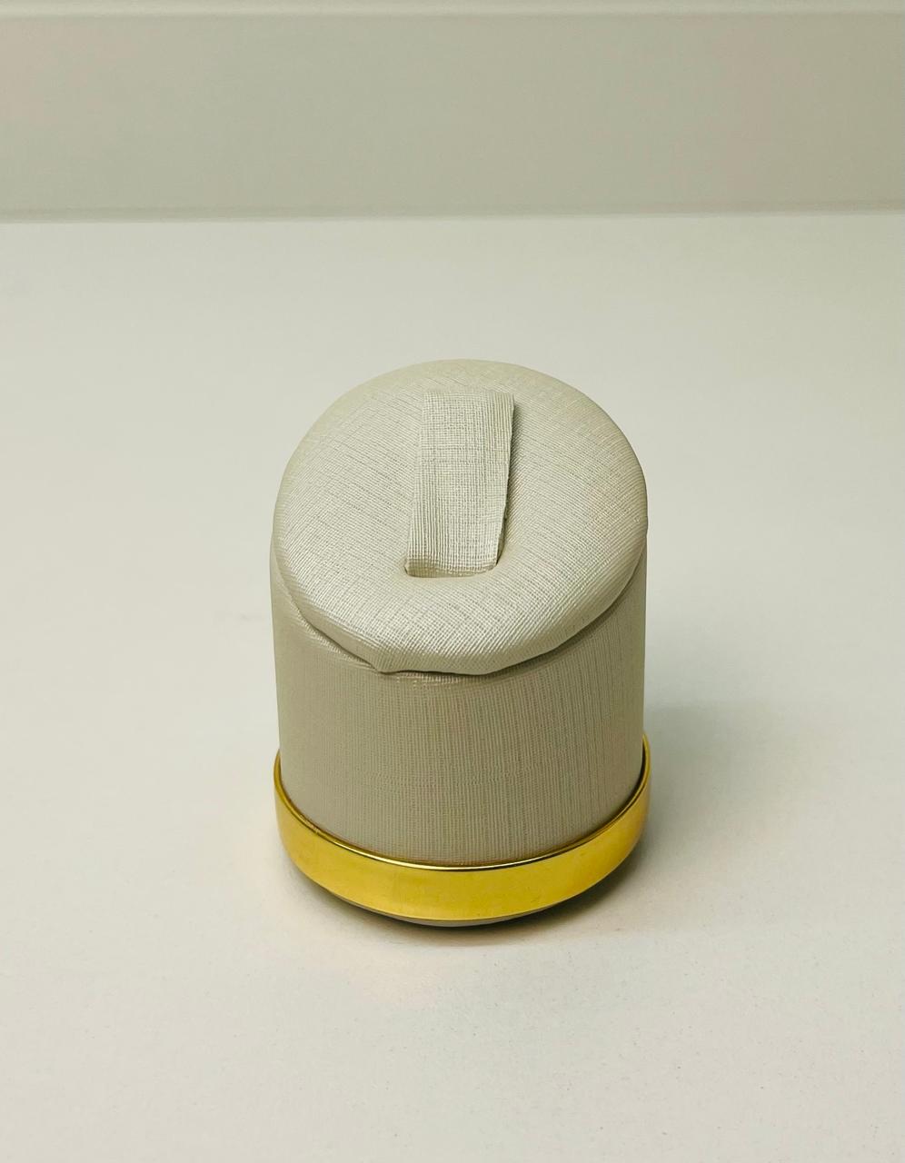 EXPOSITOR DE ANEL OFF WHITE REDONDO COM FRISO (METAL EM DOURADO)