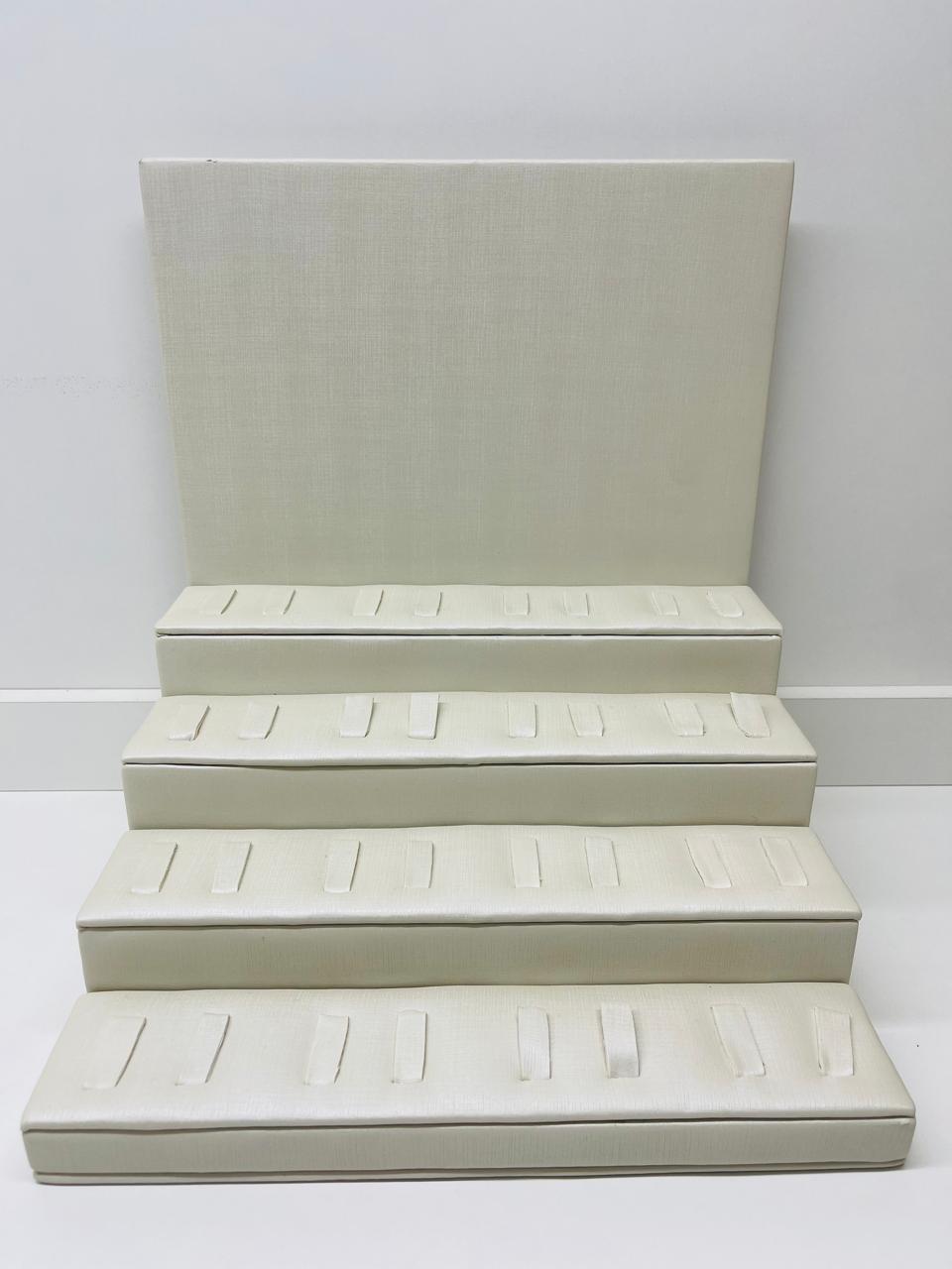EXPOSITOR ESCADA PARA ALIANÇA OFF WHITE COM 32 OPÇÕES PARA EXPOR ANÉIS E ALIANÇAS