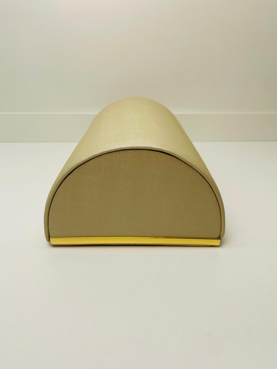EXPOSITOR MEIA LUA PÉROLA COM FRISO ( METAL EM DOURADO)