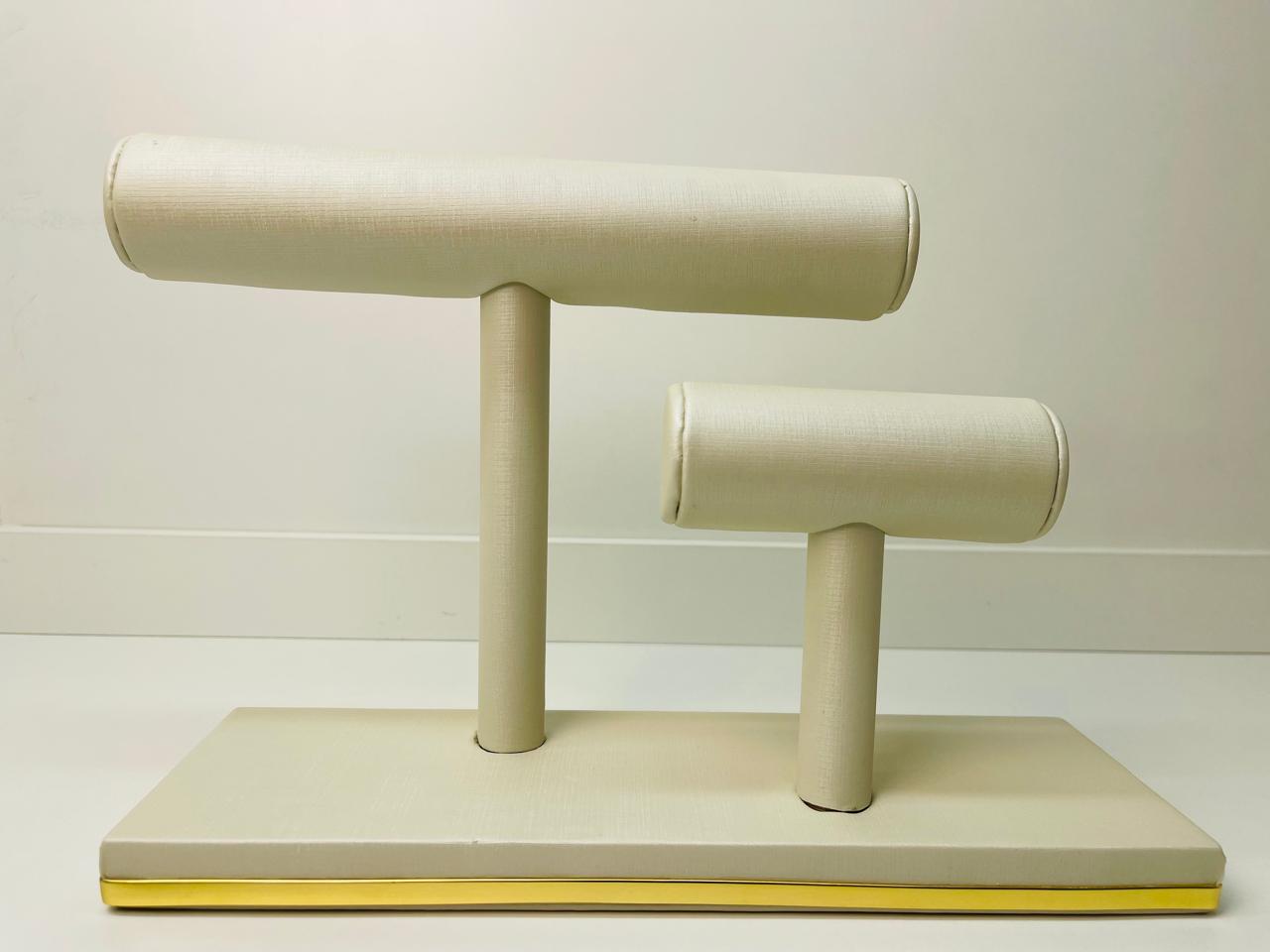 EXPOSITOR PULSEIRA DUPLO OFF WHITE COM FRISO( METAL EM DOURADO)