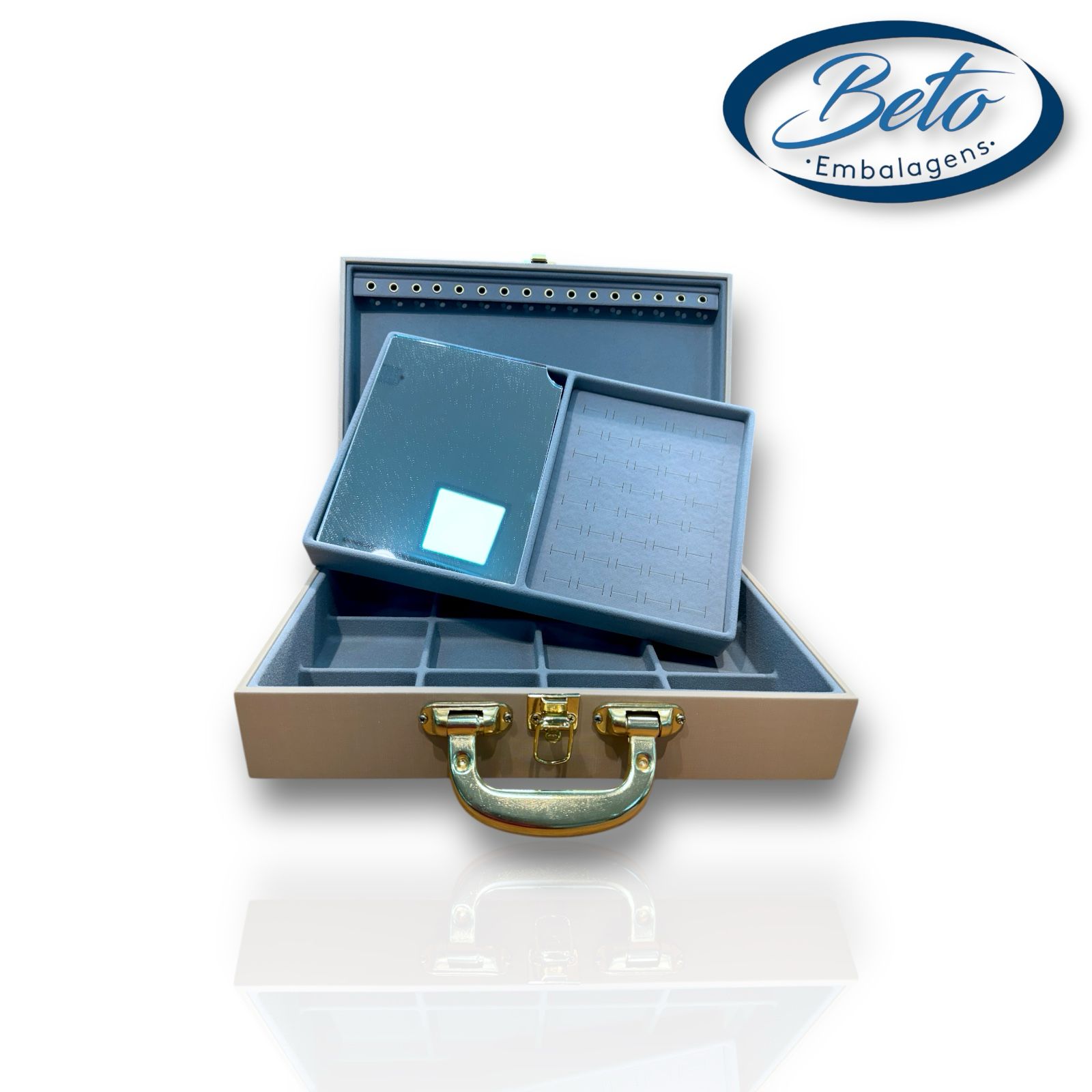 Maleta / Porta-Jóias Grande Dupla - Perola / Cinza